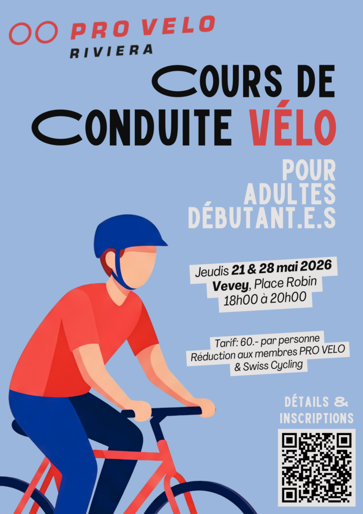 Renseignements et prises de contact : info@pro-velo-riviera.ch / Voir page Agenda